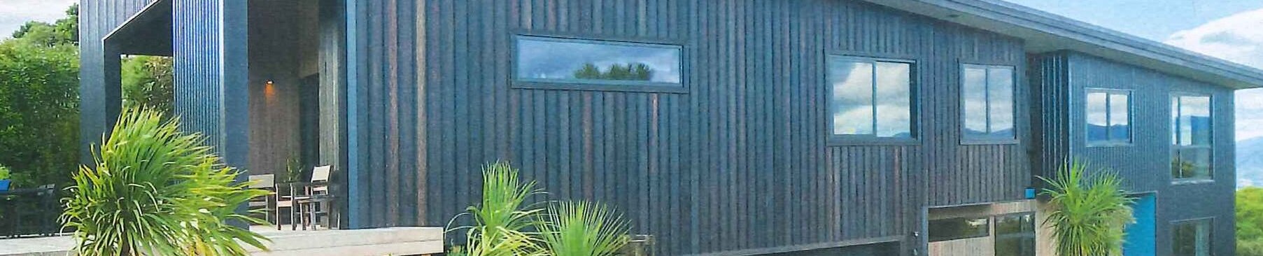 At the top of a steep and circuitous driveway, a dark wedge-shaped house rises up out of bush-clad hills of Korokoro. Large windows, open the home to views of the sea, bush and garden. The timber deck to the west connects the living areas to a contoured grass area with new native growth.